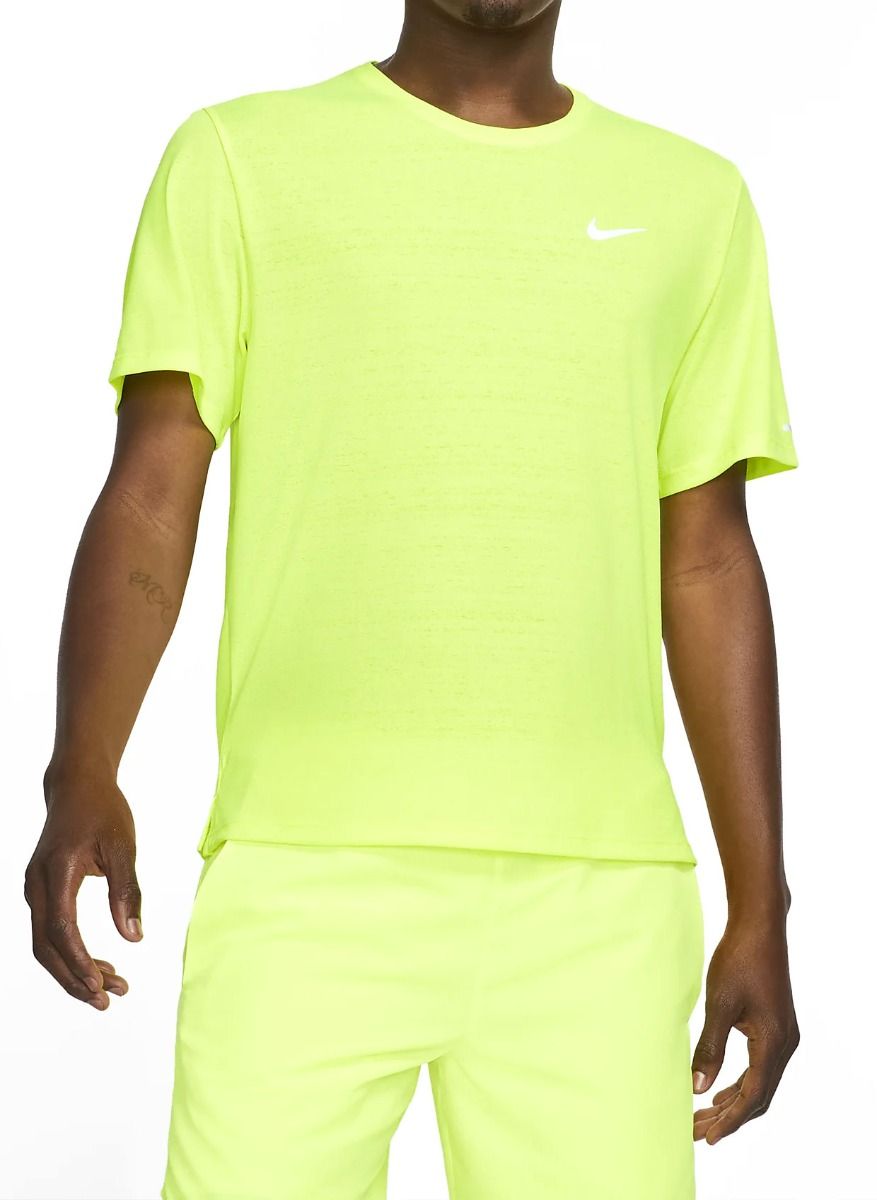 Het Nike Dri-FIT Cool Miler T-shirt voor heren is een comfortabel hardloopshirt met korte mouwen. Het T-shirt van Nike is de vernieuwde versie van de gelijknamige shirts. Het nieuwe gerecyclede Dri-FIT materiaal, zorgt voor een luchtstroom, waardoor je droog en comfortabel kunt hardlopen. Dankzij de opliggende schoudernaden kunnen je armen vrij bewegen. Het lichtgewicht T-shirt is volledig gemaakt van mesh materiaal en beschikt over openingen aan de zijkant voor optimale bewegingsvrijheid. De zoom aan de achterkant is wat langer waardoor je continu bedekt blijft tijdens elke beweging.